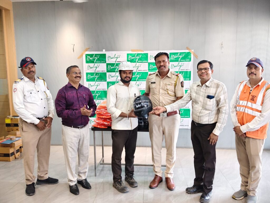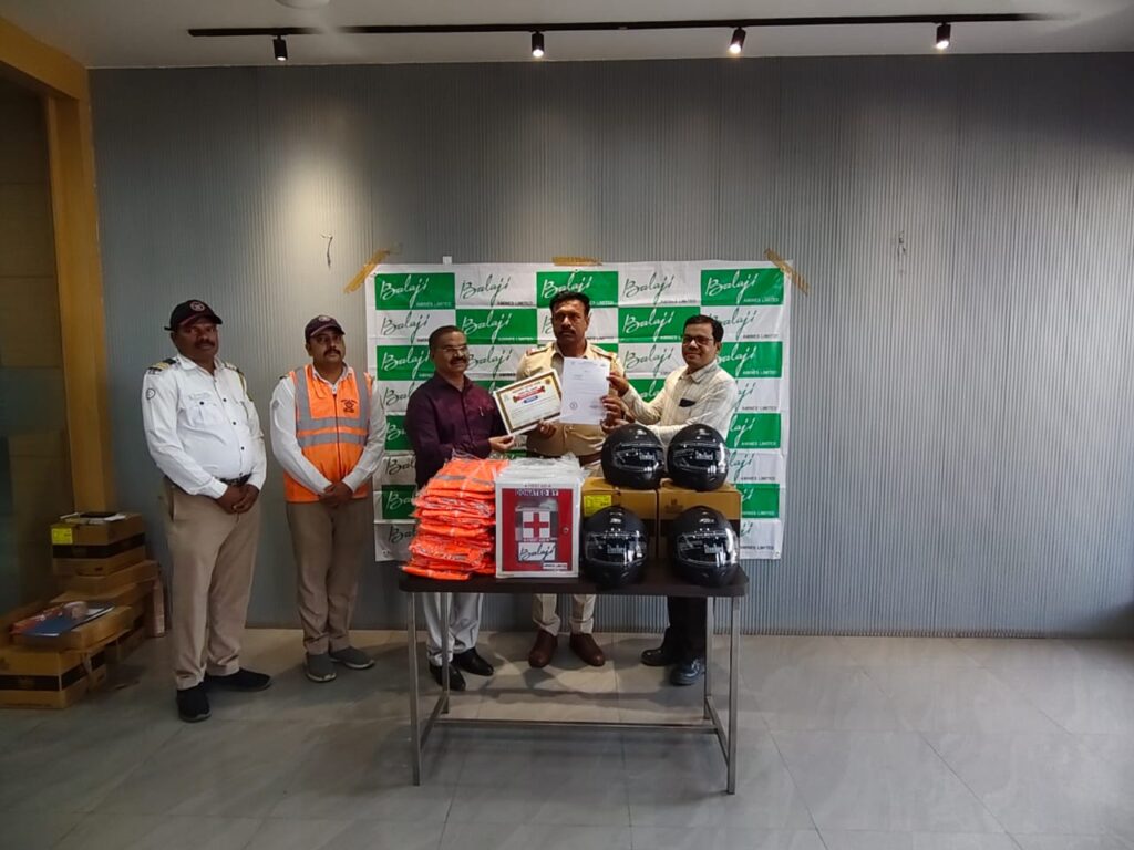 रस्ता सुरक्षा सप्ताहानिमित्त बालाजी अमाईन्सकडून साहित्य वितरण