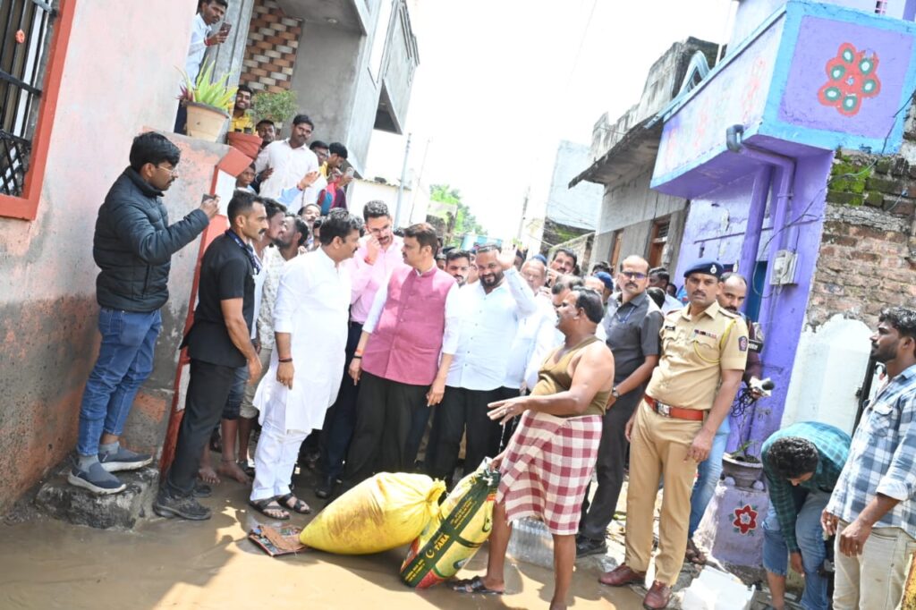 सोलापूर – जिल्ह्यात अतिवृष्टी व पुरामुळे प्रचंड प्रमाणात नुकसान झालेले दिसून येत आहे. शेती पिकांचे जनावरांचे घरांचे व्यावसायिकांचे खूप मोठे नुकसान झालेले असून पूरग्रस्त नागरिकांनी अशा संकटाच्या काळात धीर धरावा, राज्य शासन संकटकाळात पूरग्रस्तांच्या पूर्णपणे पाठीशी असून नागरिकांना सर्वोतोपरी मदत केली जाणार असल्याची ग्वाही मुख्यमंत्री देवेंद्र फडणवीस यांनी दिली.