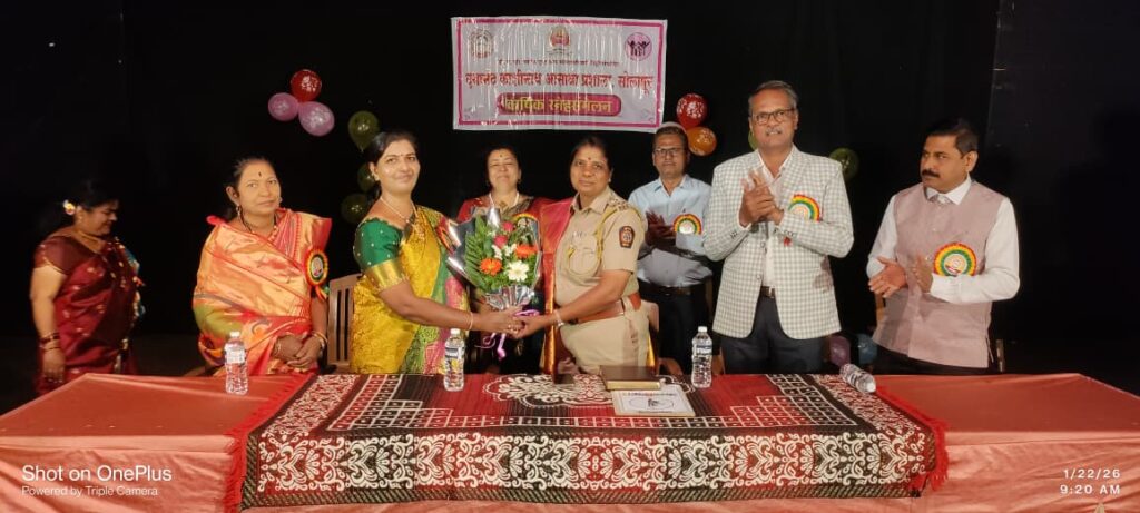 संगीता पाटील, वरीष्ठ पोलिस निरीक्षक, सोलापूर या प्रमुख अतिथी म्हणून लाभल्या. ‘विदयाथ्यांनी मोबाईलच्या आभासात्मक, दुनियेतून बाहेर पडावे आणि माणसं जपावीत, भारतीय संस्कृती जोपासावी असा मोलाचा सल्ला यावेळी संगीता पाटील यांनी दिला.