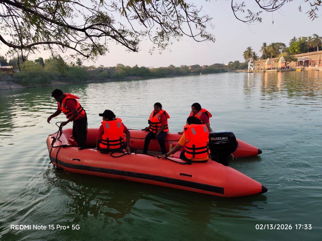 सोलापूर – जिल्हा आपत्ती व्यवस्थापन विभागाच्या वतीने सिद्धेश्वर तलाव येथे आपदा मित्र सखींना बोट चालवण्याचा सराव घेण्यात आला. आपत्तीजनक परिस्थितीत बचाव कार्यासाठी बोट महत्त्वपूर्ण ठरते. त्यामुळे सातत्यपूर्ण सरावातून गुणवत्तापूर्ण कामगिरी साध्य होऊन बचाव कार्य अधिक प्रभावीपणे करता येईल, असा उद्देश या उपक्रमामागे आहे, अशी माहिती जिल्हा आपत्ती व्यवस्थापन अधिकारी शक्तिशागर ढोले यांनी दिली.