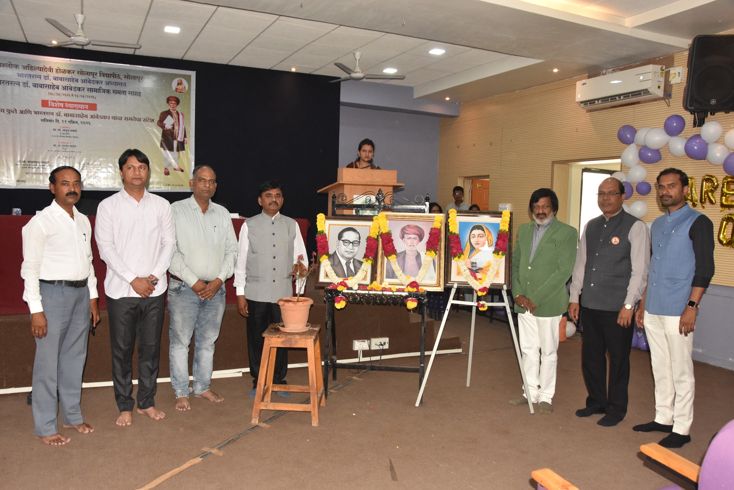 पुण्यश्लोक अहिल्यादेवी होळकर सोलापूर विद्यापीठातील डॉ. बाबासाहेब आंबेडकर अध्यासन केंद्र आणि सामाजिक शास्त्रे संकुल यांच्या संयुक्त विद्यमाने आयोजित भारतरत्न सामाजिक समता सप्ताहात ते प्रमुख पाहुणे म्हणून बोलत होते. महात्मा जोतीराव फुले यांच्या 200 व्या जयंती निमित्त आणि डॉ. बाबासाहेब आंबेडकर यांच्या जयंतीचे औचित्य साधून या कार्यक्रमाचे आयोजन करण्यात आले होते. या विशेष कार्यक्रमाच्या अध्यक्षस्थानी विद्यापीठाचे प्र. कुलसचिव डॉ. अतुल लकडे होते. मंचावर सामाजिक शास्त्रे संकुलाचे संचालक डॉ. गौतम कांबळे, प्राचीन भारतीय इतिहास संस्कृती आणि पुरातत्व शास्त्र विभागाचे प्रमुख डॉ. प्रभाकर कोळेकर, डॉ. बाबासाहेब आंबेडकर अध्यासनाचे अध्यक्ष राजाभाऊ सरवदे आणि वित्त व लेखा अधिकारी महादेव खराडे यांची प्रमुख उपस्थिती होती.