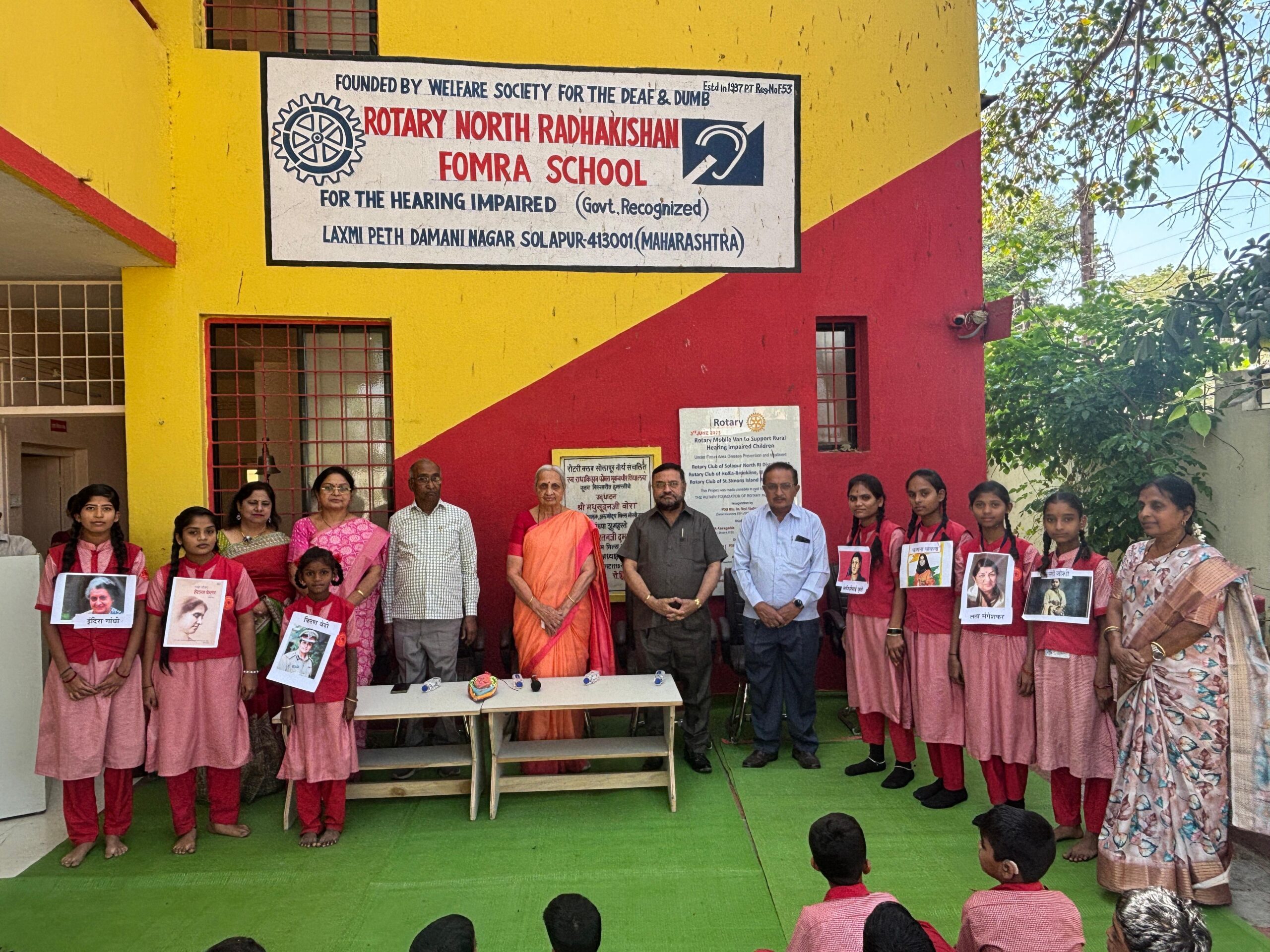 सोलापूर : रोटरी नॉर्थ राधाकिशन फोमरा मूकबधिर विद्यालय, दमानी नगर येथे जागतिक महिला दिनाच्या पूर्वसंध्येला उत्साहात “महिला दिन” साजरा करण्यात आला. या कार्यक्रमाच्या प्रमुख पाहुण्या विशाखा मराठे यांनी विद्यार्थ्यांना मार्गदर्शन केले. यावेळी बोलताना विशाखा मराठे म्हणाल्या, “आपण समाजाकडून जसे घेतो तसे समाजाला देता देखील आले पाहिजे. समाजाचे ऋणी व्हायचे असेल तर प्रत्येकाने आपल्या परीने समाजासाठी योगदान देणे आवश्यक आहे.” त्यांनी आपल्या मनोगतातून समाजसेवेचे महत्त्व अधोरेखित केले. तसेच सुप्रसिद्ध उद्योजिका व लेखिका सुधा मूर्ती यांच्या कार्याचे उदाहरण देत महिला दिनाचा खरा अर्थ विद्यार्थ्यांना गोष्टीरूपात समजावून सांगितला. महिला दिन हा महिलांचा सन्मान करण्याचा दिवस असला तरी स्त्री आणि पुरुष दोघेही समाजाच्या प्रगतीसाठी तितकेच महत्त्वाचे आहेत, असेही त्या म्हणाल्या. या निमित्ताने विद्यालयातील विद्यार्थिनींनी विविध क्षेत्रात कर्तृत्व गाजवलेल्या महिलांच्या व्यक्तिरेखा सादर करून उपस्थितांची मने जिंकली. प्रमुख पाहुण्यांसह उपस्थितांनी विद्यार्थ्यांचे आणि शाळेच्या कार्याचे मनापासून कौतुक केले.