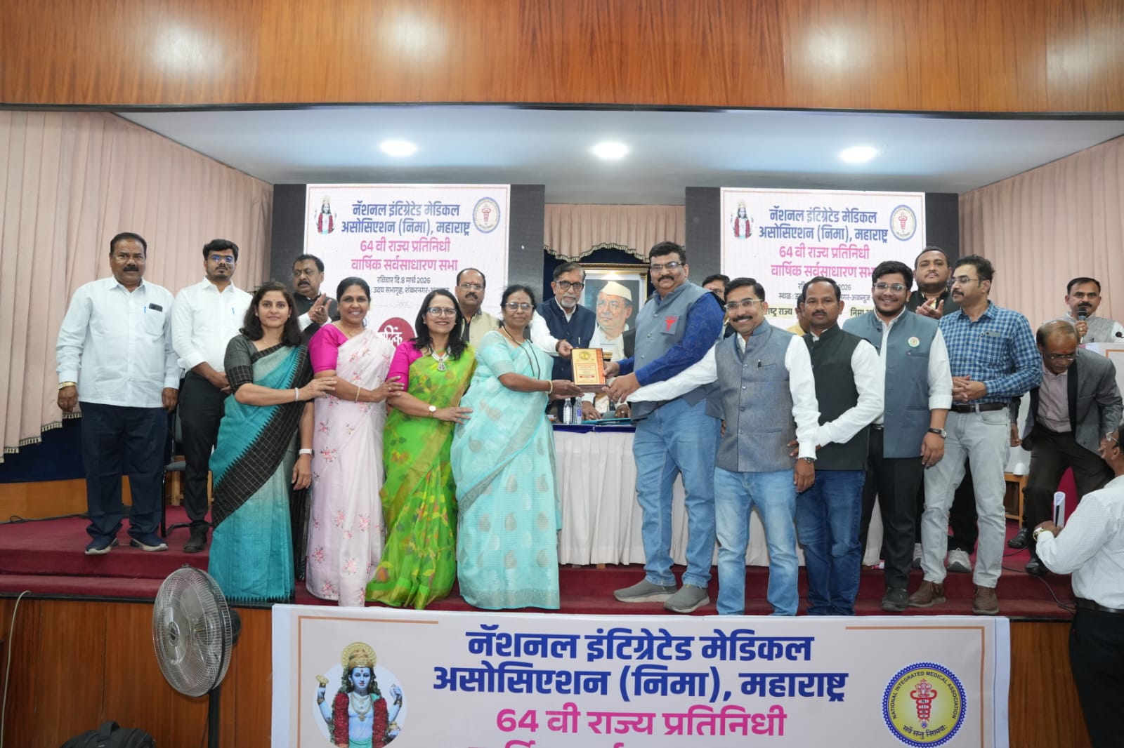 अकलूज येथे पार पडलेल्या निमा राज्यस्तरीय सभेत सन्मान स्वीकारताना निमा सोलापूर शाखेचे पदाधिकारी. डॉ. विनायक टेंभुर्णीकर ,डॉ. साहेबराव गायकवाड, डॉ.रविराज गायकवाड, डॉ.नागनाथ जिड्डीमनी, डॉ अभिजीत पुजारी ,डॉ.प्रवीण ननवरे , डॉ.धनंजय कुलकर्णी ,डॉ. योगेश उडगीकर ,डॉ.आमिर कोटनाळ, डॉ.श्रुती मराठे ,डॉ.पल्लवी भांगे ,डॉ.अश्विनी देगावकर, डॉ.राजश्री मठ.