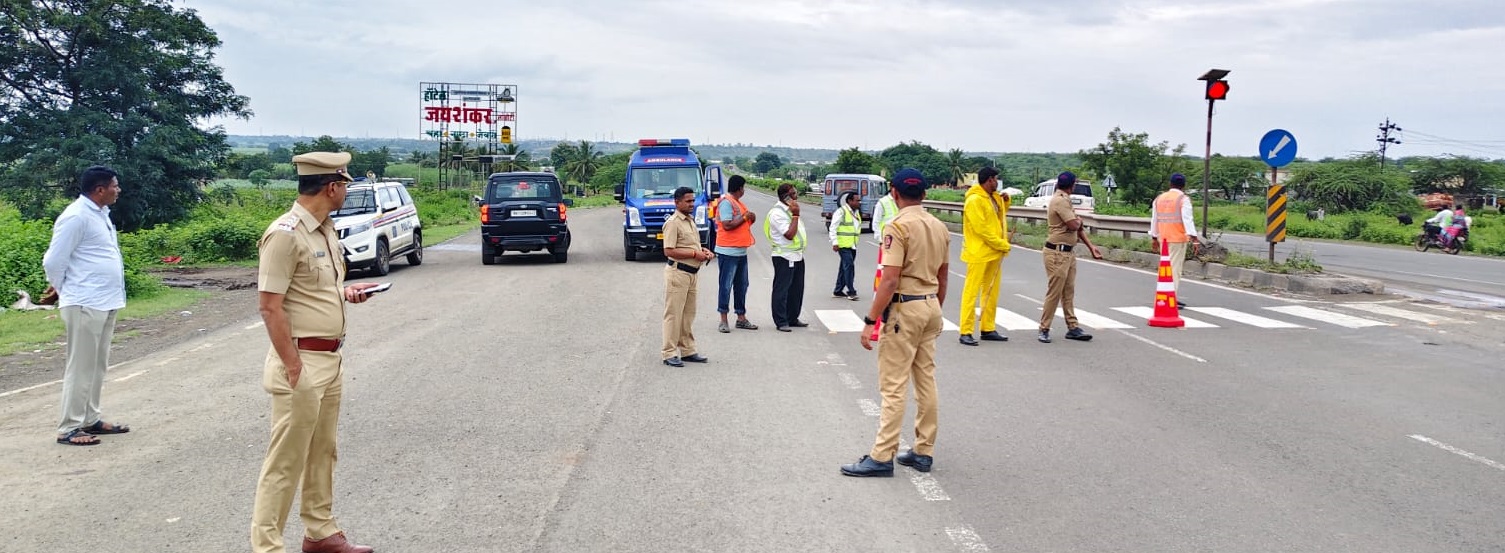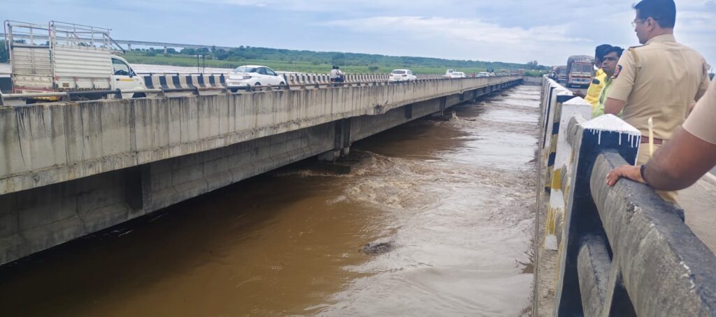 मोहोळ – पुणे सोलापूर महामार्गावरील लांबोटी ब्रिजच्या महापुर सद्यस्थितीवर मोहोळचे प्रशासन लक्ष ठेवून आहे. स्वतः पोलीस निरीक्षक हेमंत शेडगे हे या ठिकाणी उपस्थित असून मोहोळ पोलीस प्रशासनाने राष्ट्रीय महामार्ग प्राधिकरणाच्या अधिकाऱ्यांच्या पथकाला या ठिकाणी प्राचारण केले आहे. पुलाच्या आडव्या खांबास पाणी लागल्यानंतर त्याचा दाब पर्यायाने संपूर्ण पुलावर येऊन संपुर्ण पुलासही मोठा धोका देखील पोहोचू शकतो, त्यामुळे पाणी लागल्यानंतर वाहतूक बंद ठेवणे क्रमप्राप्त बाब आहे. या अधिकाऱ्यांचा अभिप्राय घेऊनच वाहतूक बंद ठेवण्याचा निर्णय पोलीस प्रशासन आणि आपत्ती व्यवस्थापन विभाग घेणार असल्याचे प्राथमिक माहिती आहे. पूर्वदक्षता म्हणून या ठिकाणी मोहोळची पोलीस निरीक्षक हेमंत शेडगे यांनी सकाळपासूनच चोख बंदोबस्त ठेवला आहे. आता काही क्षणापूर्वी एक बाजु वाहतूक प्रशासनाने पूर्व दक्षता म्हणून बंद केली आहे..