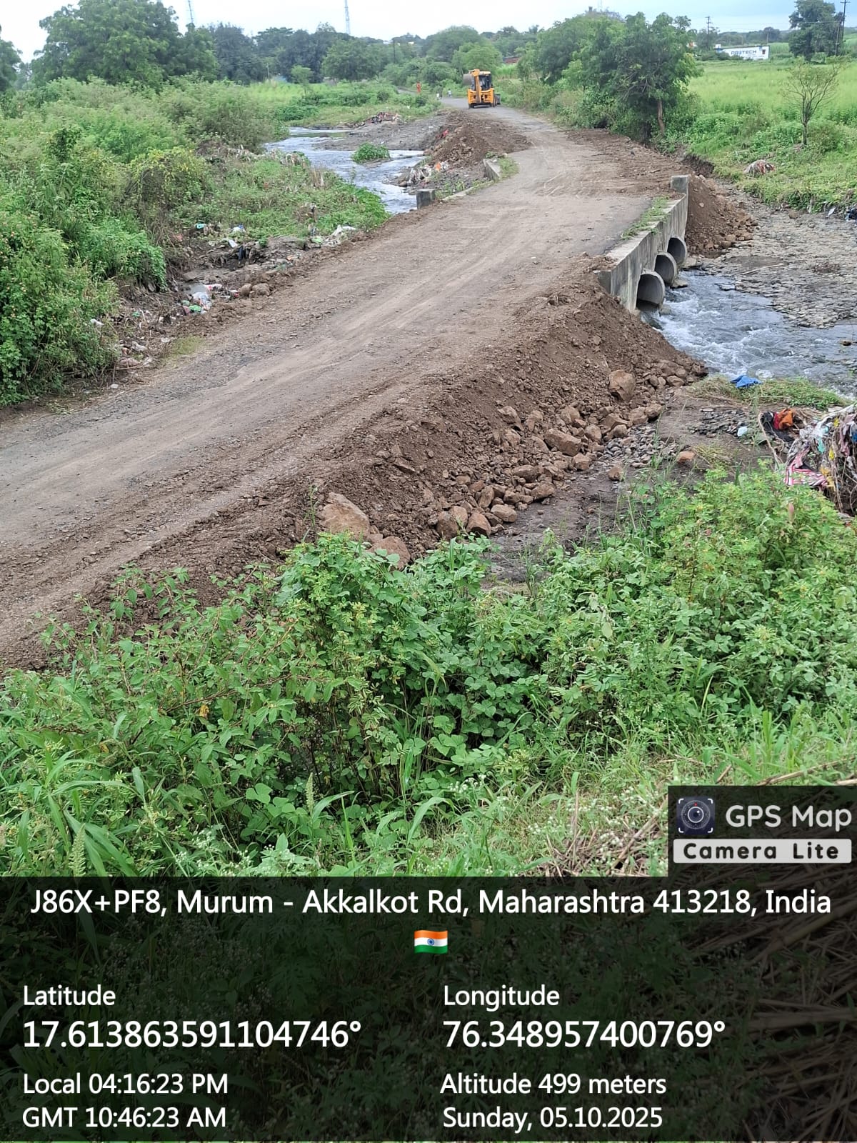 तसेच किरनळ्ळी ते घोळसगाव, सापळे ते बादोले, बोरगाव ते वागदरी या मार्गांवर दि. ३० सप्टेंबर ते ९ ऑक्टोबर २०२५ दरम्यान सार्वजनिक बांधकाम विभागाकडून मोऱ्यांच्या पोचमार्गांचे तात्काळ दुरुस्तीचे काम हाती घेण्यात आले. मुरूम भरून रस्ते वाहतुकीस खुले करण्यात आले असून शेतकरी, रहिवासी, रुग्ण व शालेय विद्यार्थ्यांना दिलासा देण्याचे कार्य यशस्वीपणे पार पडले आहे.
