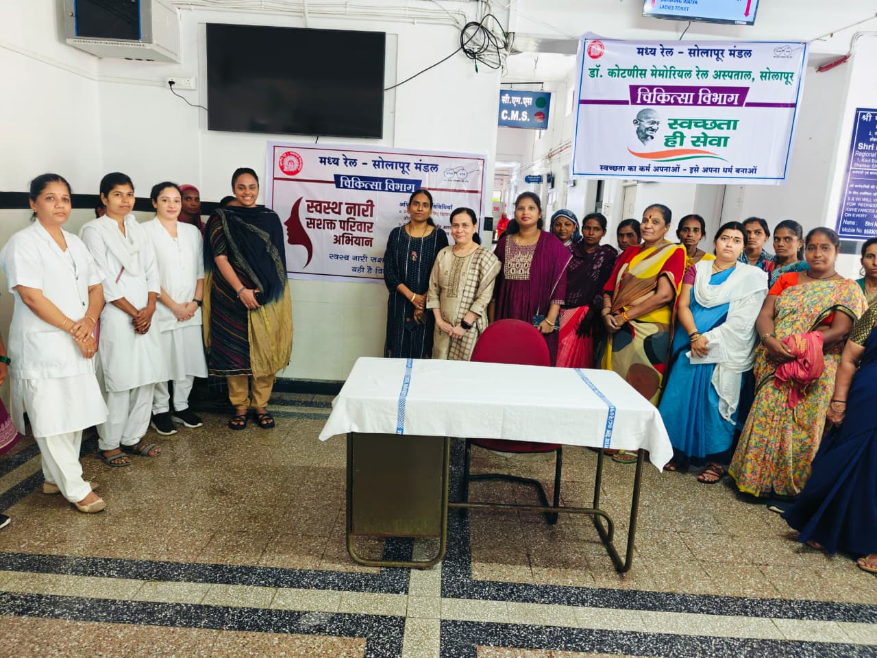 मध्य रेल्वेच्या सोलापूर विभागाने १८ सप्टेंबर २०२५ रोजी सोलापूर येथील डॉ. कोटनीस मेमोरियल डिव्हिजनल रेल्वे हॉस्पिटल (डीआरएच) येथे “स्वस्थ नारी, सशक्त परिवार अभियान” अंतर्गत महिला कर्मचाऱ्यांसाठी एक विशेष आरोग्य तपासणी शिबिराचे आयोजन केले होते, ज्याचा उद्देश कुटुंबांचे कल्याण आणि सक्षमीकरण सुनिश्चित करण्यात महिलांच्या आरोग्याची महत्त्वाची भूमिका अधोरेखित करणे हा होता.
