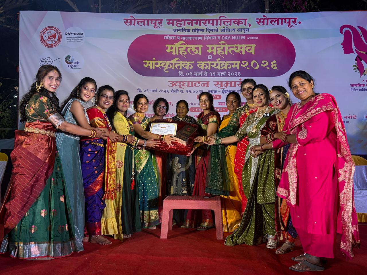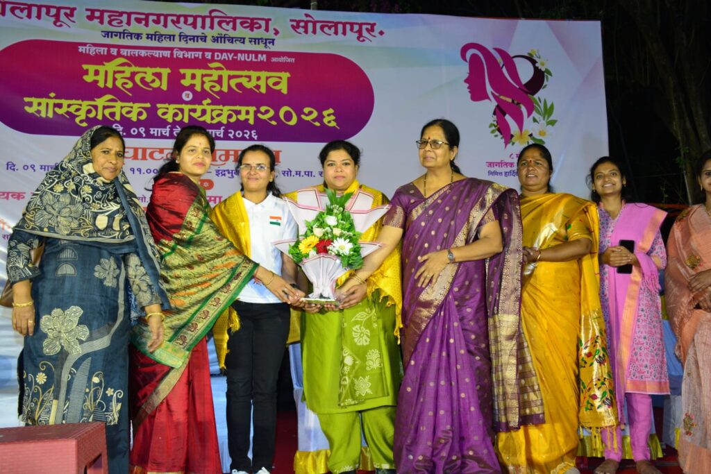 सोलापूर महानगर पालिका, महिला बालकल्याण विभाग व दीनदयाळ अंत्योदय योजना राष्ट्रीय नागरी उपजीविका अभियान आयोजित महिला बचत गटांनी उत्पादित केलेल्या मालाल बाजारपेठ मिळावी, त्याचा प्रचार व प्रसार व्हावा या हेतूने दिनांक ९ ते ११ मार्च २०२६ रोजी महिला बचत गट उत्पादित वस्तु व खाद्यपदार्थ विक्री प्रदर्शन सोलापूर महानगरपालिका आवार , इंद्र भवन परिसर, पार्क चौक, सोलापूर येथे आयोजन करण्यात आले होते, त्याचा लाभ सोलापूर शहरातील नागरिकांनी घेतला.
