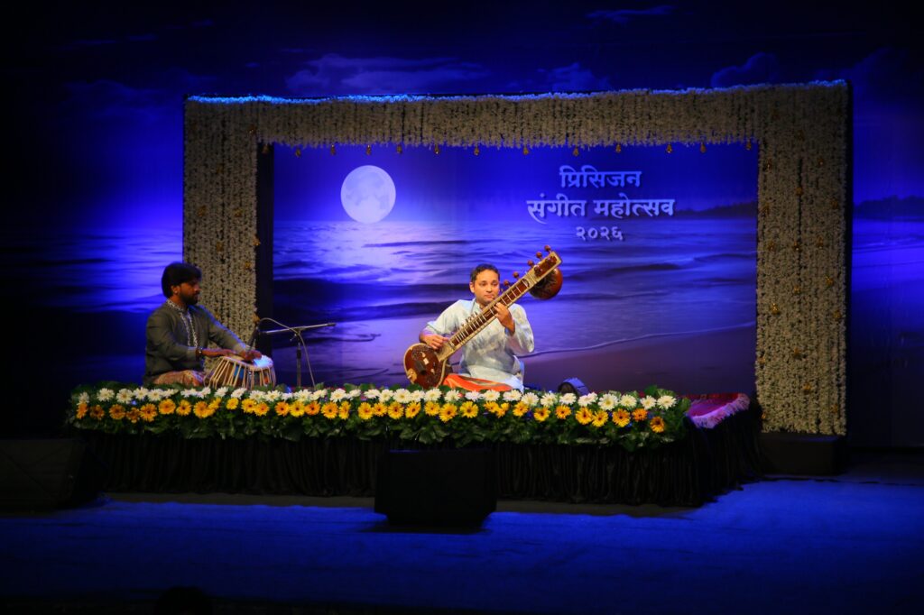 भजन संपल्यानंतर क्षणभराची शांतता आणि त्यानंतरचा ‘वाहवा’ हा रसिकांच्या अंतःकरणातून उमटलेला प्रतिसाद होता.सायंकाळी अचूक ६.२५ वाजता सुरू झालेल्या या मैफलीने पहिल्याच दिवशी महोत्सवाची उंची निश्चित केली. प्रिसिजन कॅमशाफ्ट्सचे चेअरमन व व्यवस्थापकीय संचालक यतिन शहा, प्रिसिजन फाऊंडेशनच्या अध्यक्षा डॉ. सुहासिनी शहा, प्रिसिजनचे कार्यकारी संचालक करण शहा, मयुरा शहा, डॉ. सुधांशु चितळे आणि डॉ. किरण चितळे यांच्या हस्ते दीपप्रज्वलन झाले आणि त्या दिव्याच्या उजेडात संगीताचा हा भावयज्ञ सुरू झाला. रविवारी (दि.८) महोत्सवाच्या दुसऱ्या दिवशीही रसिकांसाठी संगीताची भावसमृद्ध संध्याकाळ सजणार आहे.