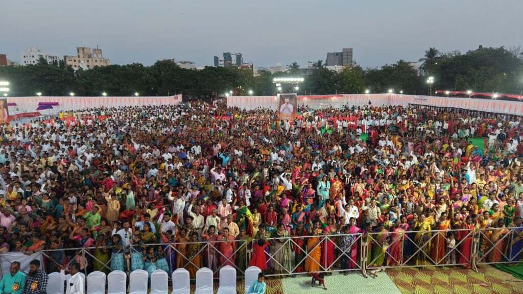 सोलापूर : गोरज मुहूर्तावरची लगबग….मंगलवाद्यांचे सूर…आणि अनुपम्य असा सोहळा ‘याची देही याची डोळा’ पाहण्यासाठी जमलेले हजारो वऱ्हाडी अशा वातावरणात बुधवारी स्व. विष्णूपंत कोठे प्रतिष्ठानतर्फे २६ जोडप्यांचा मोफत सर्वधर्मीय सामुदायिक विवाह सोहळा अत्यंत आनंदी वातावरणात झाला. लिंगराज वल्याळ मैदानावर झालेल्या या सामुदायिक विवाह सोहळ्यास सोलापूर जिल्ह्याचे पालकमंत्री जयकुमार गोरे,