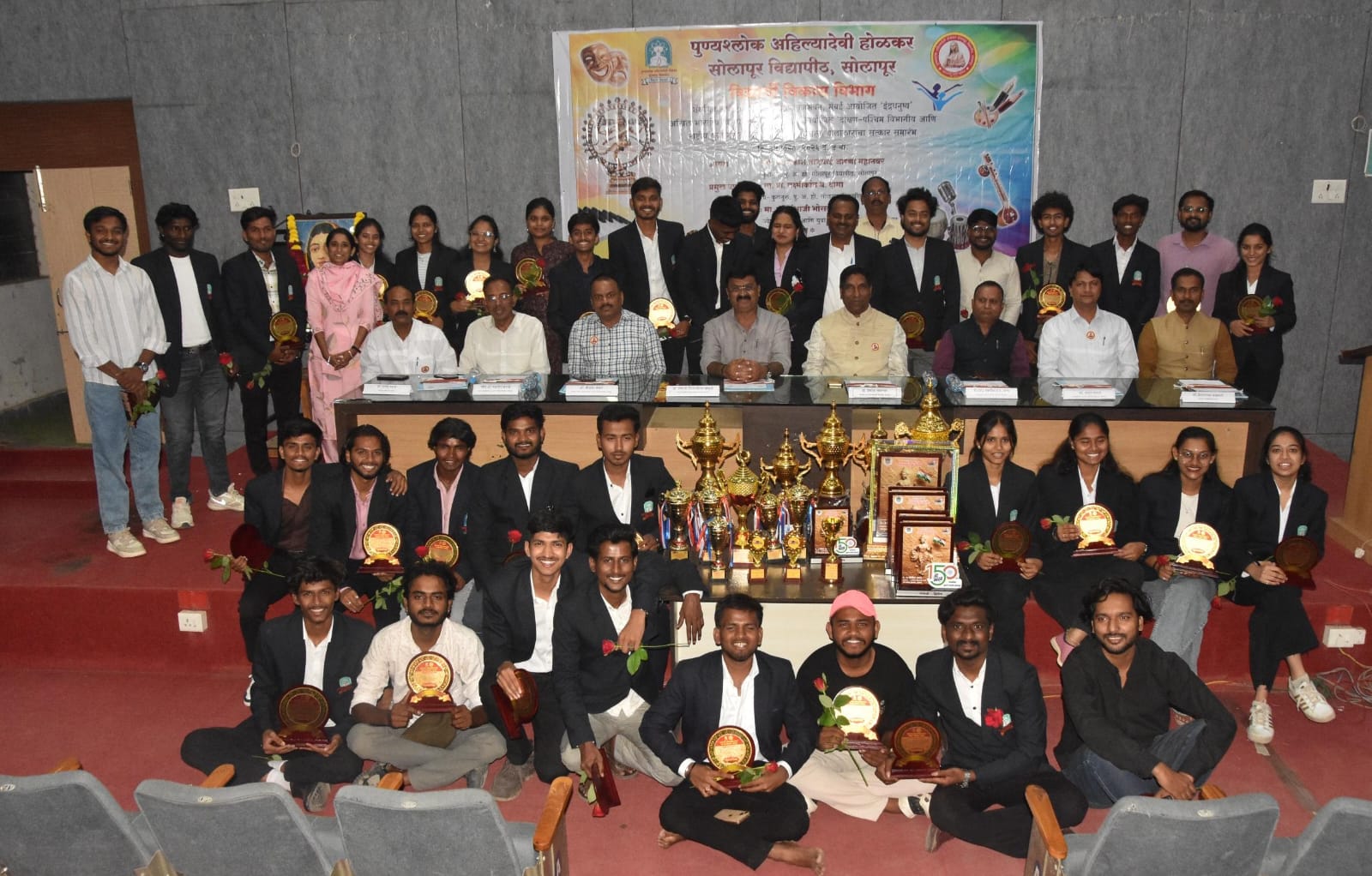 सोलापूर- पुण्यश्लोक आहिल्यादेवी होळकर सोलापूर विद्यापीठातील विद्यार्थी विकास विभागाच्या विद्यार्थी कलावंतांनी राज्यस्तरीय ‘इंद्रधनुष्य’, पश्चिम विभागीय तसेच राष्ट्रीय युवा महोत्सवात उल्लेखनीय कामगिरी करत घवघवीत यश संपादन केले आहे. या विद्यार्थ्यांच्या कर्तृत्वामुळे सोलापूर विद्यापीठाचे नाव निश्चितच देशपातळीवर उज्वल होईल, असा विश्वास ज्येष्ठ नाट्यकलावंत व परीक्षक डॉ. संभाजी भोसले यांनी व्यक्त केला.